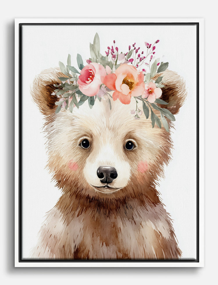 Soft watercolor fur and a crown of delicate blooms—this gentle bear brings instant warmth and whimsy to your walls. Whether youre curating a cozy nursery or adding a playful touch to the kids room, this piece invites smiles and sparks imagination. The gentle browns and fresh floral accents blend effortlessly with everything from modern to boho decor, making it easy to create a space you’re proud of. Let your home tell a story that feels as unique and joyful as you are.