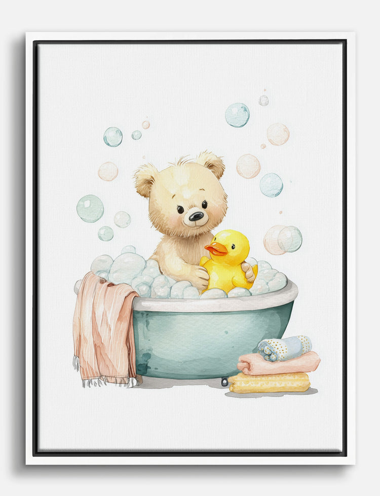 A tub full of bubbles, a cuddly bear, and a cheerful yellow duck—this playful piece brings pure joy to any nursery or kids’ room. Soft pastels and whimsical details make it an instant mood-lifter, perfect for creating a space where little imaginations can run free.