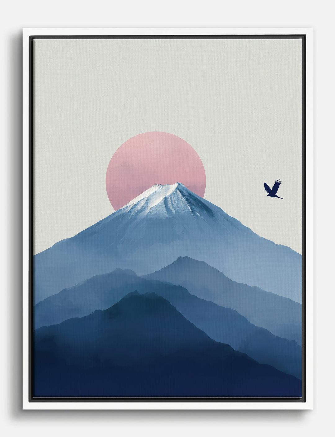 A gentle pink sun rises behind tranquil blue mountains, bringing a sense of calm and quiet wonder to your space. This piece radiates peaceful energy—perfect for creating a cozy sanctuary in your bedroom or a serene moment in your living room. The soft blue and blush hues blend effortlessly with both minimalist and modern decor, making it easy to express your unique style. Let your walls tell a story of beauty and new beginnings, all without breaking the bank.