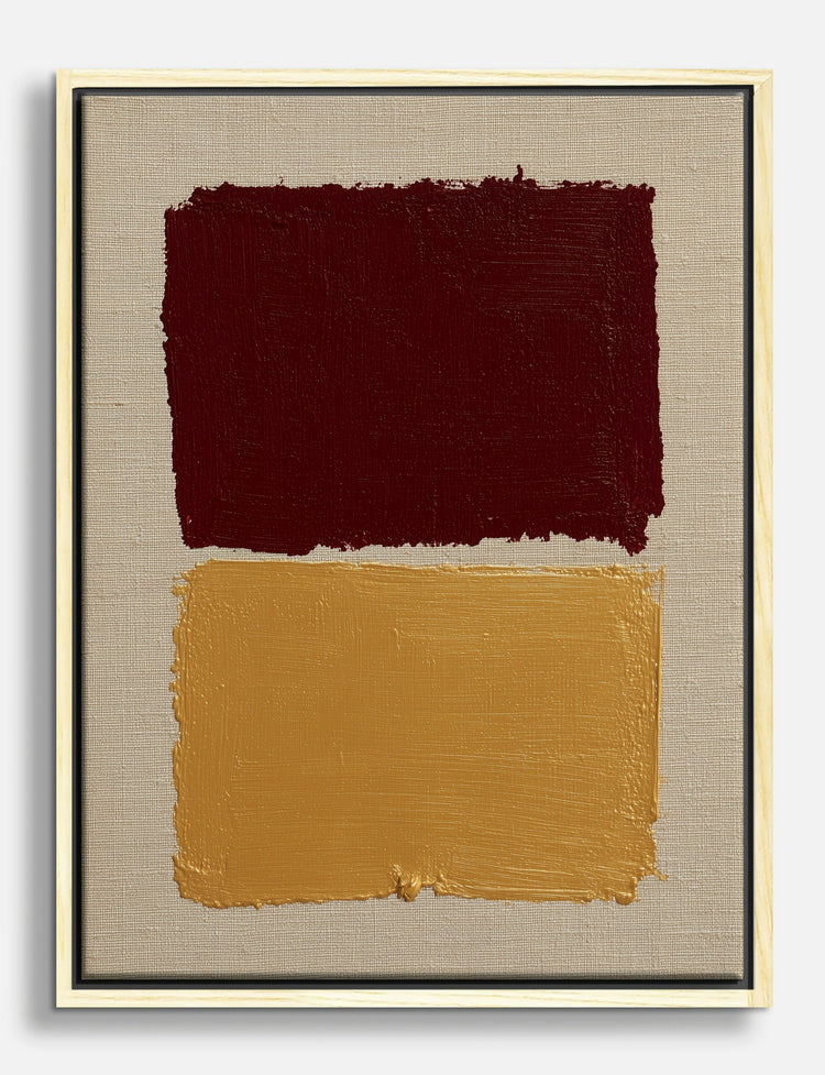 Let’s talk about the power of simplicity—two bold color blocks, one deep burgundy and one warm gold, working together to create instant impact. This piece brings a sophisticated edge to your space, making any wall feel intentional and styled with confidence.