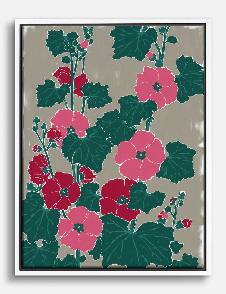 Vivid pink and crimson flowers burst against a soft, earthy backdrop—bringing a fresh, botanical twist to any space craving a pop of color. These stylized florals feel both modern and timeless, making them the perfect way to refresh your walls without the fuss.