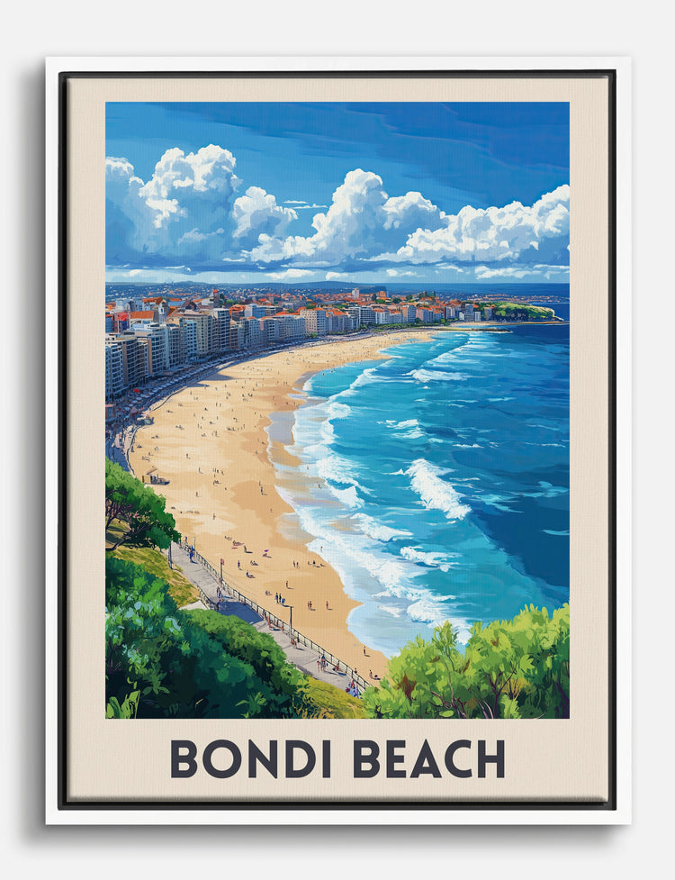 Feel the vibrant energy of Bondi Beach right in your home. This captivating artwork captures the essence of sun-kissed sands and rolling waves, bringing a splash of coastal charm to any room. Perfect for your living room or bedroom, its dynamic blues and warm sandy tones effortlessly complement modern and vintage decor alike. Transform your space into a serene retreat where style meets the sea.
