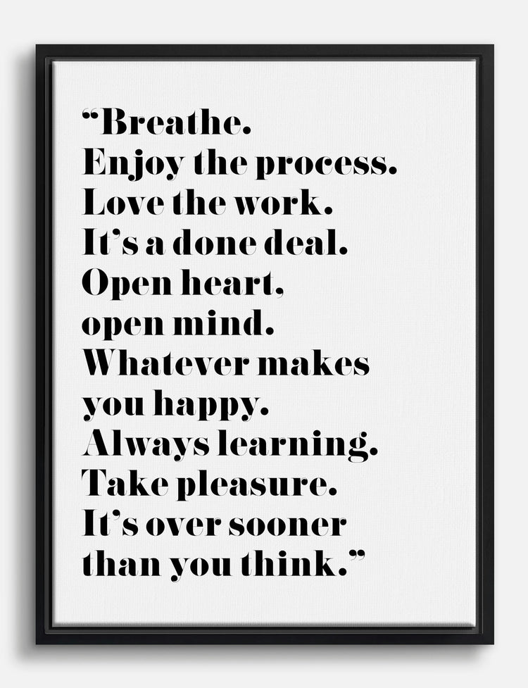 Bold words, softer days. This statement piece brings a daily dose of wisdom and calm to your space, reminding you to breathe, grow, and savor every moment. The crisp black-and-white palette pops against any wall, instantly energizing your living room, home office, or bedroom.
