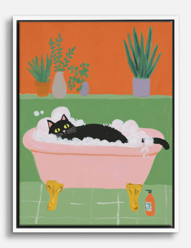 A black cat lounging in a bubble-filled tub? Now thats the kind of self-care energy your space deserves. This playful scene instantly brings a sense of calm and a dash of humor to any wall. You’ll love how the bold colors and quirky details pop against both modern and eclectic decor. Perfect for your bathroom or a cozy corner of your bedroom, this piece makes every day feel a little more whimsical. The warm orange and green tones pair beautifully with neutrals or add a splash of color to all-white spaces, inviting joy and personality into your home. Youll smile every time you see it—because your walls should reflect your unique style. With Fab, effortless transformation is always just a print away.