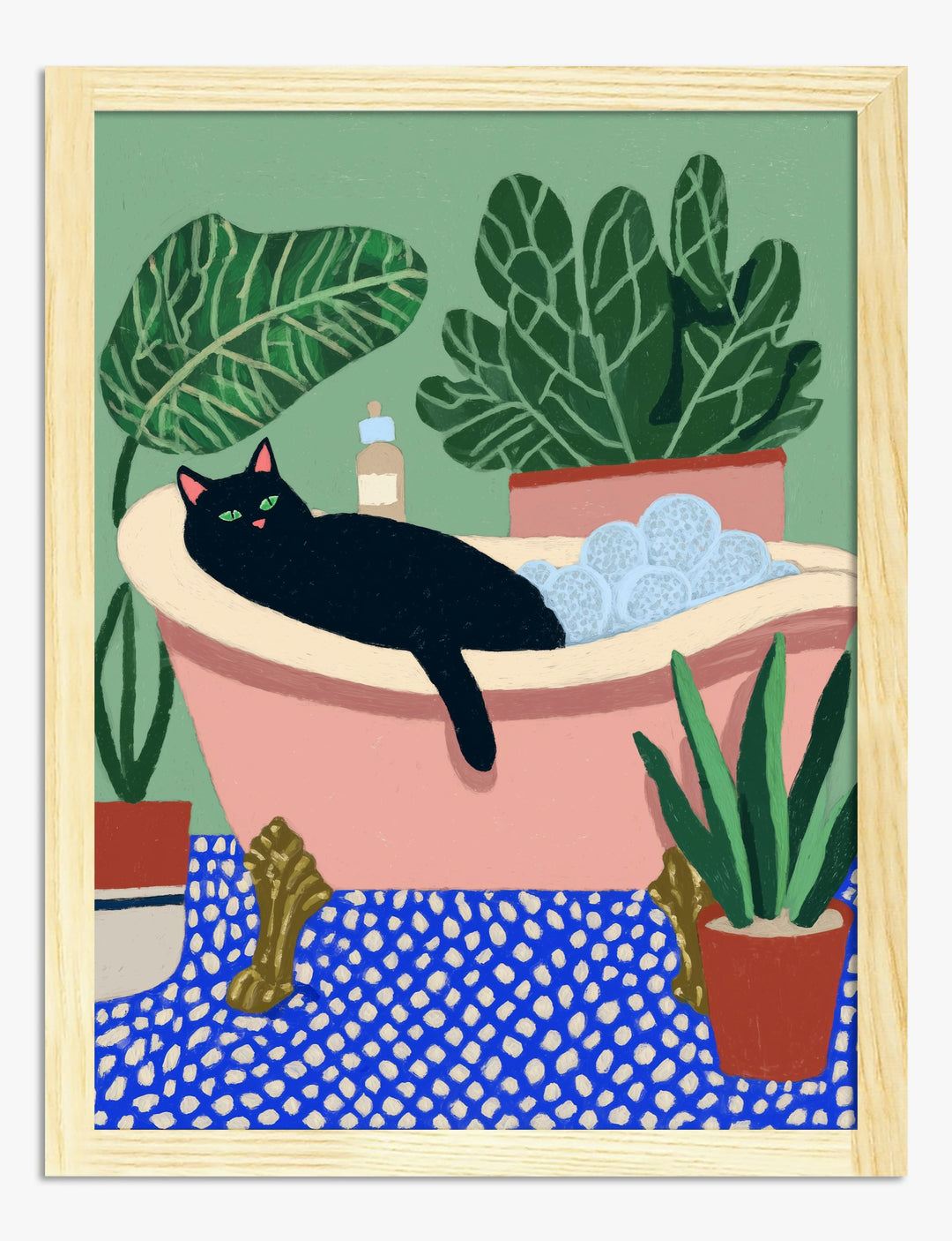Ever wondered what pure chill looks like? Meet the cat who’s mastered it—lounging in a blush tub, bubbles piled high, surrounded by lush leaves and bold blue tile. It’s playful, stylish, and quietly confident, just like you want your space to feel.