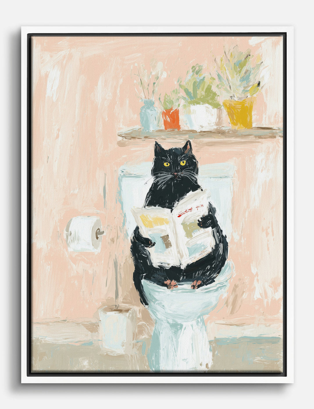 Ever wondered what your walls would say if they had a sense of humor? This playful piece brings a burst of personality to any space with its quirky black cat, caught mid-read on the toilet. It’s a whimsical reminder to find joy in the everyday—perfect for those who love a home that doesn’t take itself too seriously.