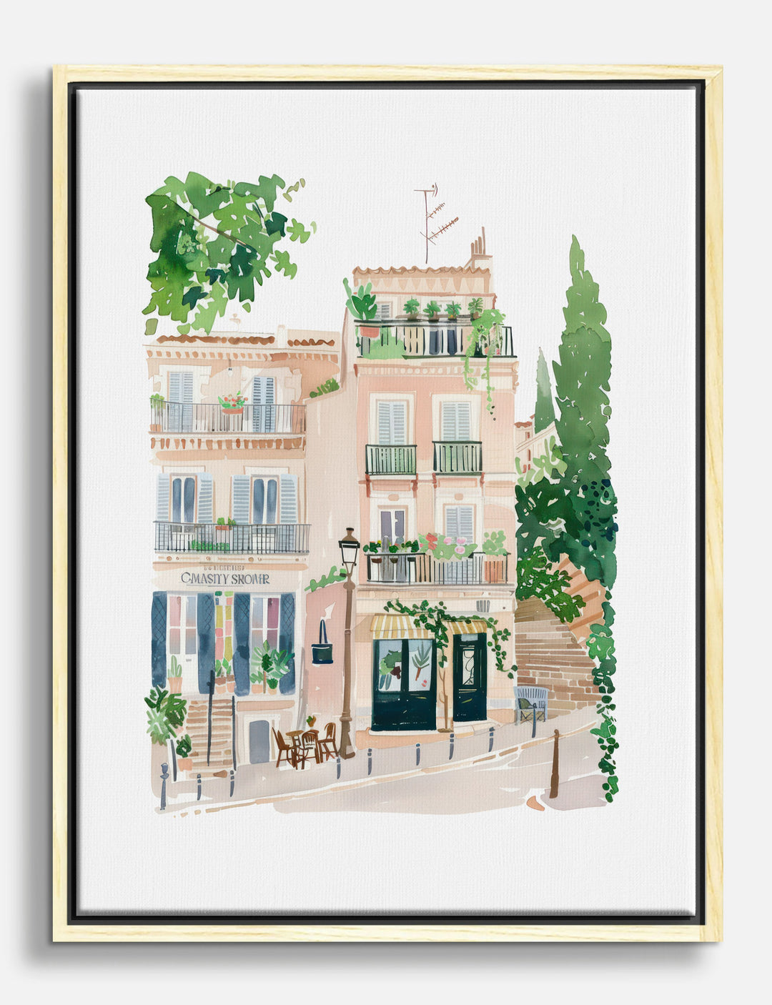 Step into the sunlit streets of Barcelona with this delightful watercolor piece. Its vibrant charm and cozy café vibe effortlessly bring a touch of European elegance to your home. Perfect for your living room or dining area, this artworks soft pastels and lush greens complement a variety of decor styles, inviting warmth and personality into your space. Transform your home into a haven of style and inspiration with this unique piece that captures the essence of Barcelona.
