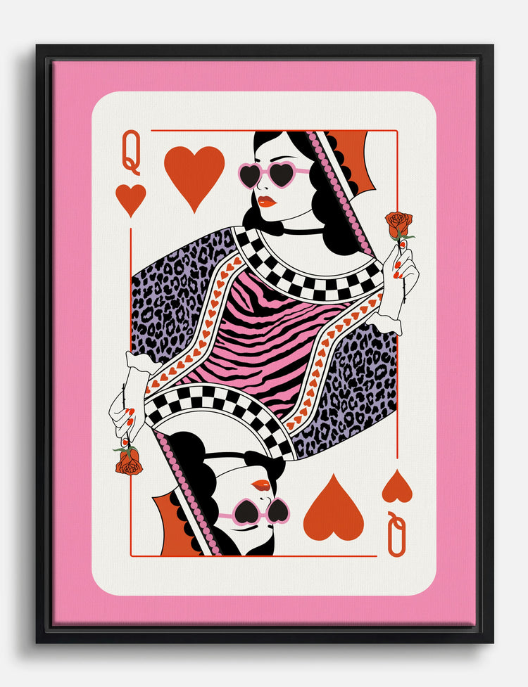 Add a playful twist to your decor with this vibrant Queen of Hearts artwork. Pops of pink and bold patterns make this piece a standout, perfect for expressing your unique style. Whether in your living room or bedroom, it infuses any space with a sense of fun and creativity. Let your walls speak volumes about your personality and flair.