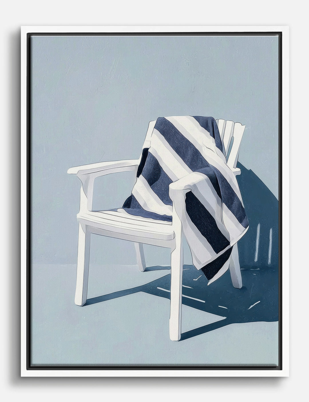 Feel the gentle breeze and embrace the serenity with Coastal Calm. This piece captures the essence of a lazy beach day, inviting you to unwind and relax. The crisp navy and white palette complements any decor style, making it a perfect addition to your living room or bedroom. Let this artwork transform your space into a tranquil retreat, where style meets comfort effortlessly.