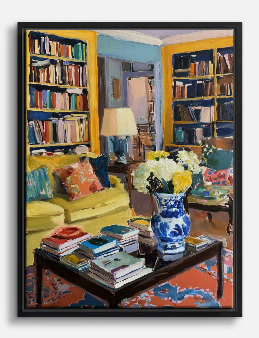 Step into a world where color and comfort meet. This vibrant scene captures the heart of a lived-in library, bursting with books, fresh blooms, and plush pillows. It’s a space that instantly makes you feel at home—whether you’re curling up with a novel or gathering with friends.