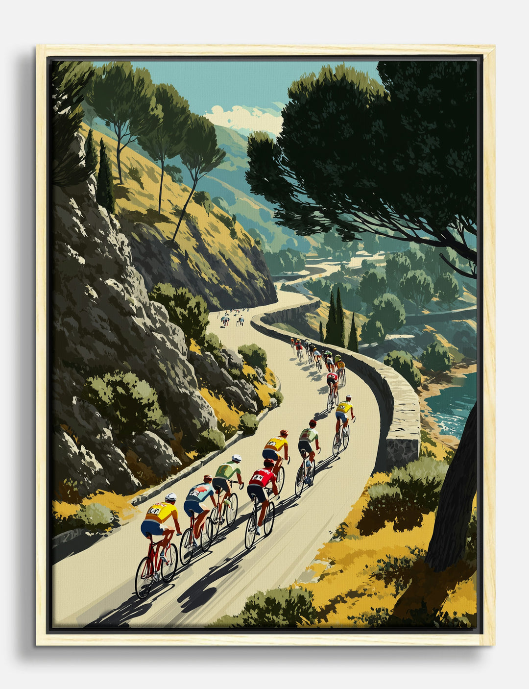 Feel the rush of adventure every time you walk by. This vibrant scene captures a group of cyclists winding through sun-dappled hills, with nature unfolding around every curve. The energy and movement will instantly add a sense of motion and excitement to your space. Picture this in your living room or office—suddenly, your walls invite you and your guests to chase new horizons. The rich greens and warm yellows harmonize beautifully with both modern and classic decor, making it easy to refresh your style without a major overhaul. Let this piece inspire your daily routine, reminding you that every day is a chance to explore, push further, and savor the ride. Youll love the pride and energy it brings to your home.