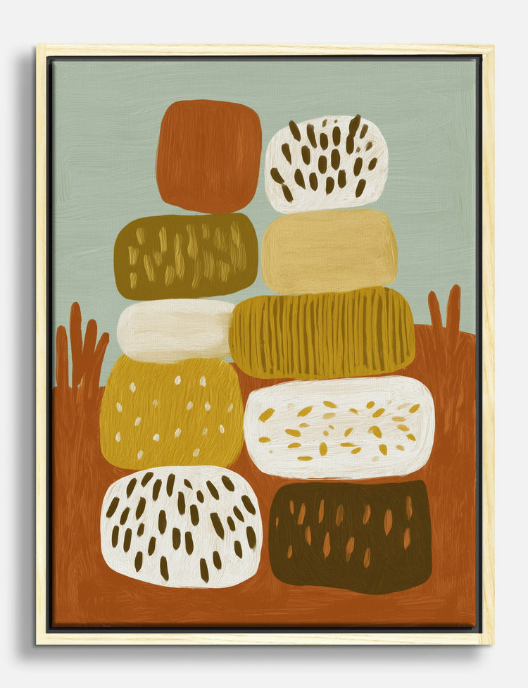 Bold shapes and warm tones come together in this playful composition, bringing a cozy, grounded energy to your space. Each abstract form feels like a friendly building block, stacked with care to spark a sense of balance and creativity. Perfect for your living room or bedroom, this piece invites you to layer your life with comfort and character. The palette of ochre, rust, and soft neutrals blends seamlessly with boho, modern, or minimalist decor, making it easy to refresh your favorite nook. Let this print be a daily reminder that great style is all about mixing what you love. With Fab, you can transform your home into a haven—no renovation required.