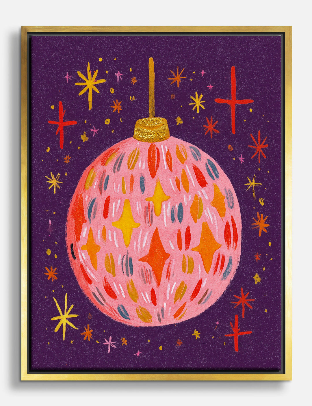A single ornament can transform your space into a celebration. This playful print bursts with pink, orange, and gold, radiating warmth and holiday cheer against a rich purple backdrop.