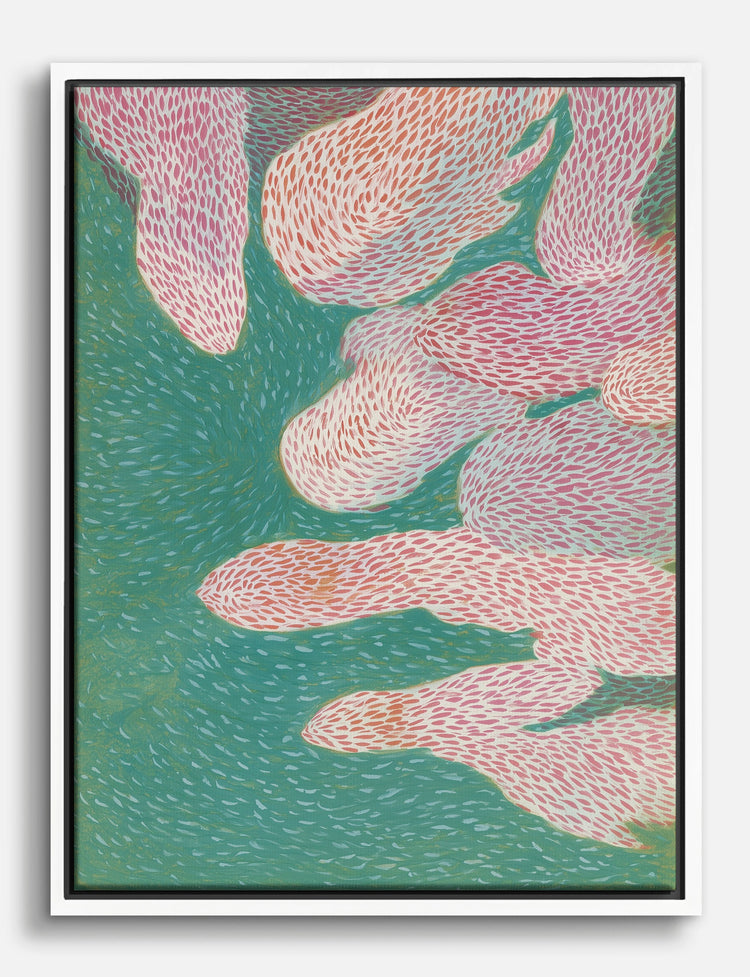 Ever feel like your space could use a little movement? This lively piece brings a sense of gentle flow and calm energy to your walls, thanks to its swirling shoal of pink fish against a serene teal backdrop. It’s like watching a quiet underwater ballet—perfect for adding a breath of fresh style to your living room or bedroom.
