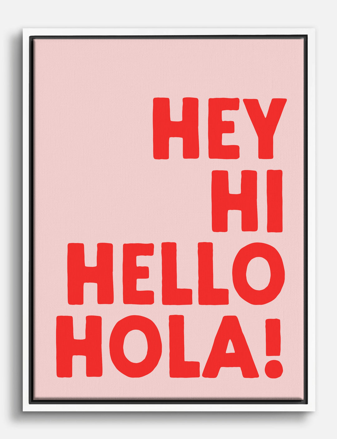 Bold greetings in vibrant red pop against a soft blush backdrop, instantly energizing any room. This piece is a celebration of connection—a cheerful reminder that every day is a fresh opportunity to say hello to the world.