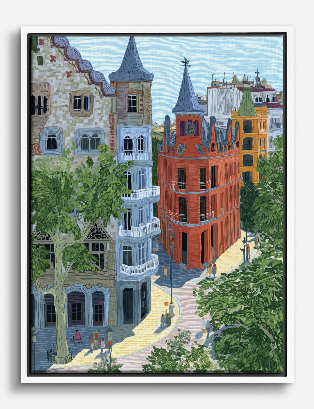 Step into a sun-dappled street where whimsical rooftops and vibrant facades bring Barcelona’s spirit straight to your walls. This piece is all about lively color and architectural playfulness, giving your home a little taste of travel and wonder every day. It pops beautifully in living rooms or entryways, inviting you—and your guests—to pause and daydream.