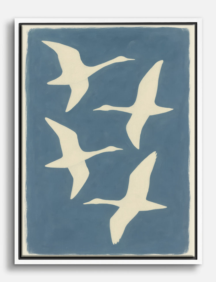 Let your walls soar with elegance as these graceful birds glide across a serene blue backdrop. Perfect for adding a touch of tranquility to your living room or bedroom, this piece brings a sense of calm and freedom to any space. The soothing color palette effortlessly complements both modern and classic decor, making it a versatile choice for your home. Embrace the pride of a beautifully styled space with this unique artwork, accessible and affordable through Fab.