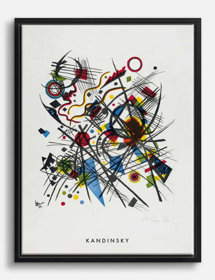 Step into a world where color and movement collide. This Kandinsky-inspired piece is a burst of creative energy, instantly transforming any wall into a vibrant conversation starter. The bold lines and playful shapes invite you to see something new every time you look—a spark of inspiration, a jolt of joy, a reminder that your space is uniquely yours. Perfect for your living room or office, this artwork pops against both modern and eclectic decor. The lively palette—black, red, yellow, and blue—adds a confident statement, making your home feel dynamic and full of life. Ready to showcase your bold side? Let this piece energize your room and remind you that great style is all about fearless self-expression.