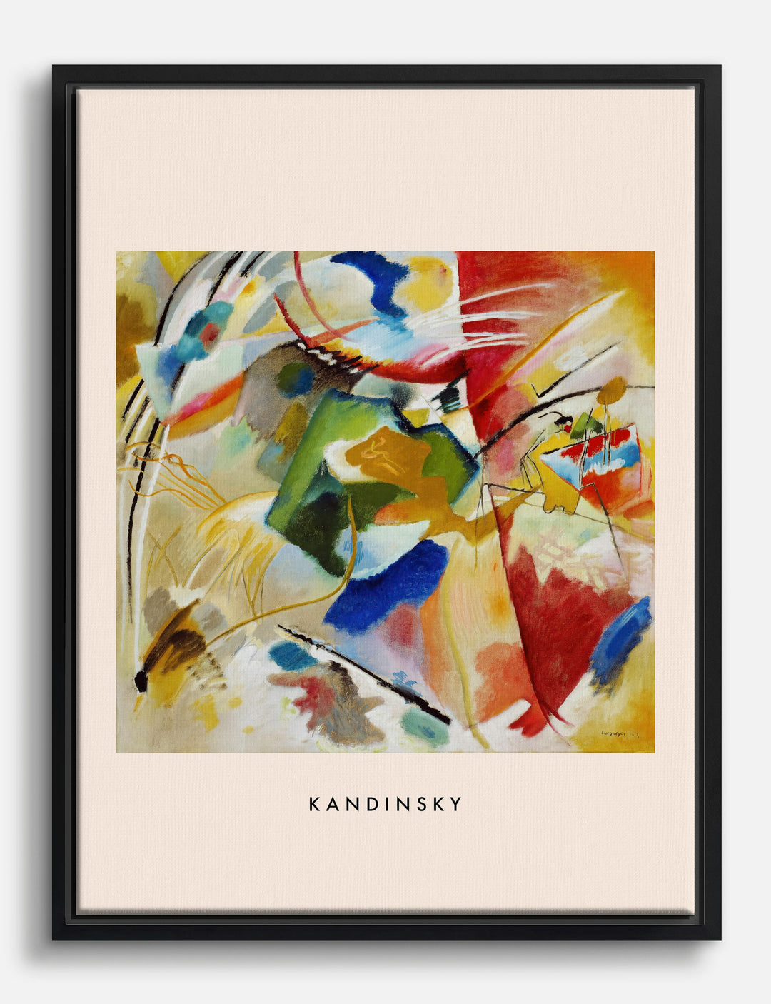 Color, movement, and energy — this Kandinsky masterpiece instantly energizes your space. Vibrant splashes of red, green, and blue swirl together in an abstract dance, creating a focal point that feels both playful and sophisticated. Perfect for your living room or office, this piece pops against neutral walls and pairs beautifully with modern or eclectic decor. The layered colors and bold shapes invite conversation and spark creativity, making your home feel curated and uniquely yours. Let your walls show off your artistic side. With this iconic Kandinsky, you’re not just decorating — you’re making a statement that’s as bold and original as you are.