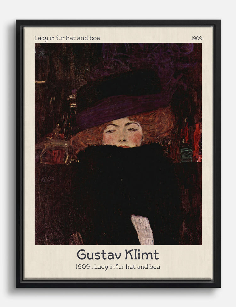 A mysterious gaze, a swirl of deep purples and velvety blacks — this is the kind of art that instantly elevates your space. Gustav Klimt’s “Lady in Fur Hat” brings a touch of old-world glamour and quiet intrigue, perfect for anyone craving a dash of dramatic style.