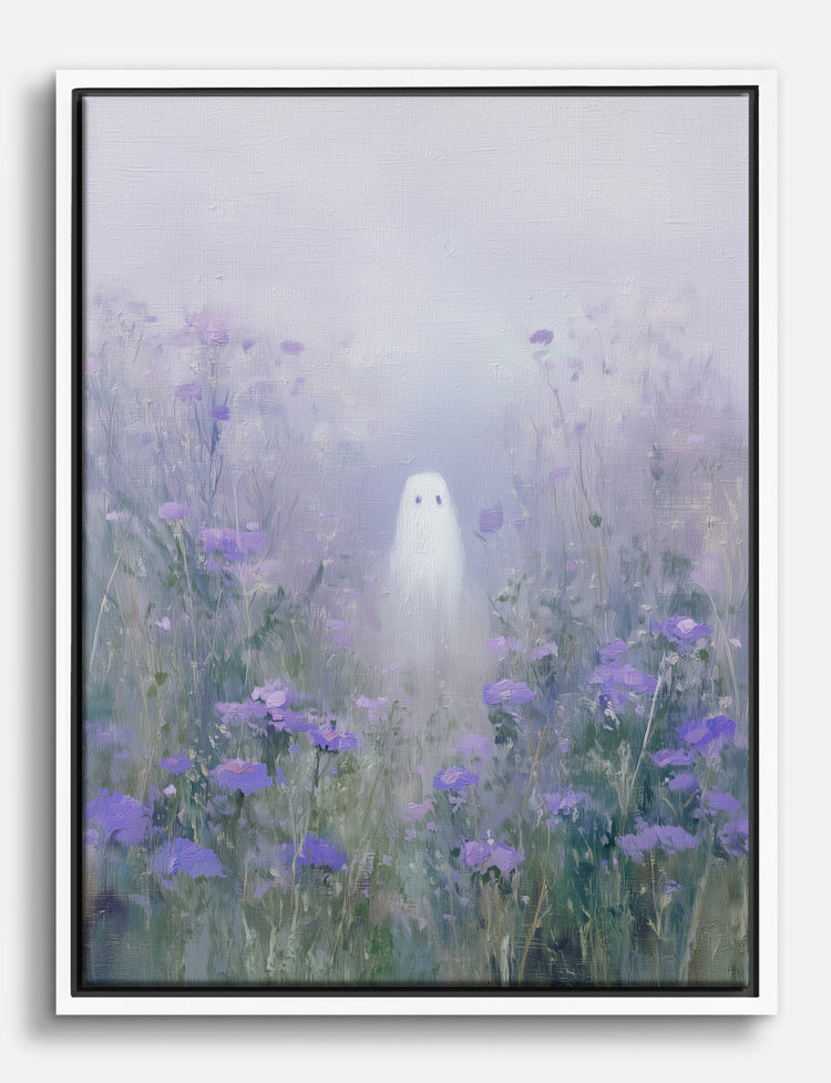 Soft mist drifts through a field of lavender, where a gentle ghost peeks out with quiet curiosity. This piece instantly adds a touch of whimsy and calm to your space—perfect for anyone craving a little magic in their everyday.