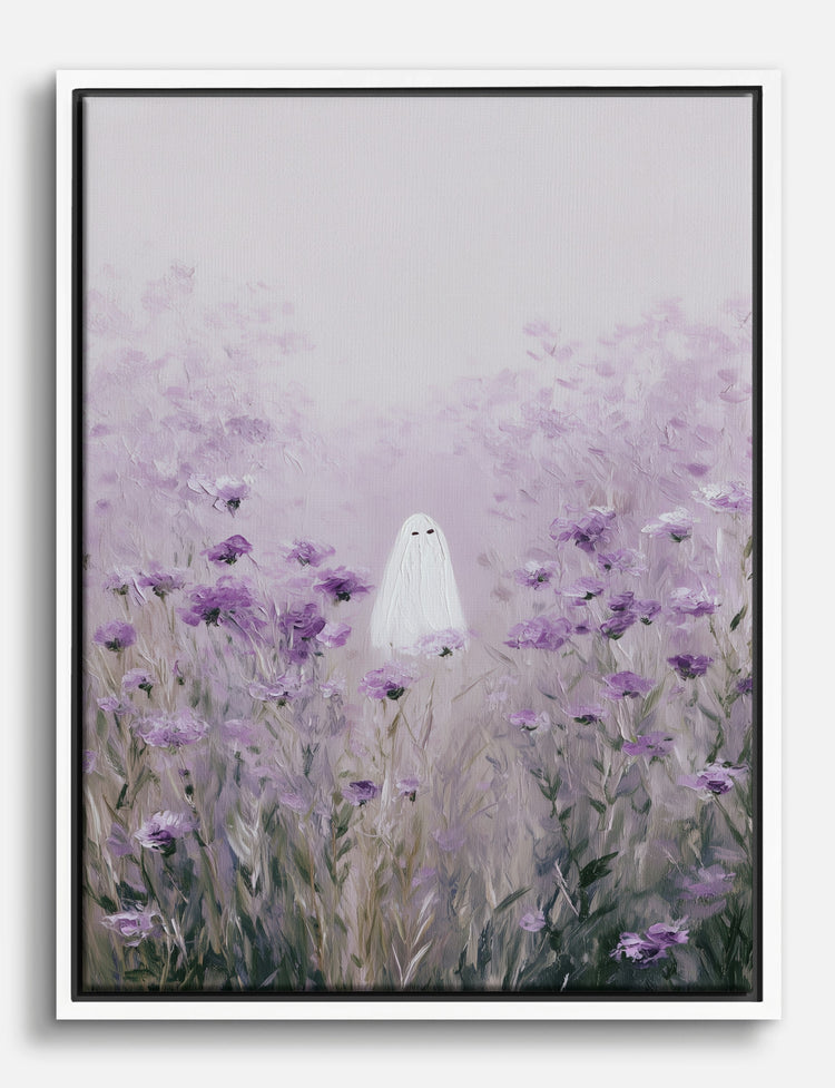 A gentle ghost drifts through a misty field of lavender, bringing a soft, playful twist to your walls. This piece wraps your space in a dreamy haze of lilac and muted purple—perfect for sparking your imagination and adding a little whimsy to everyday life.