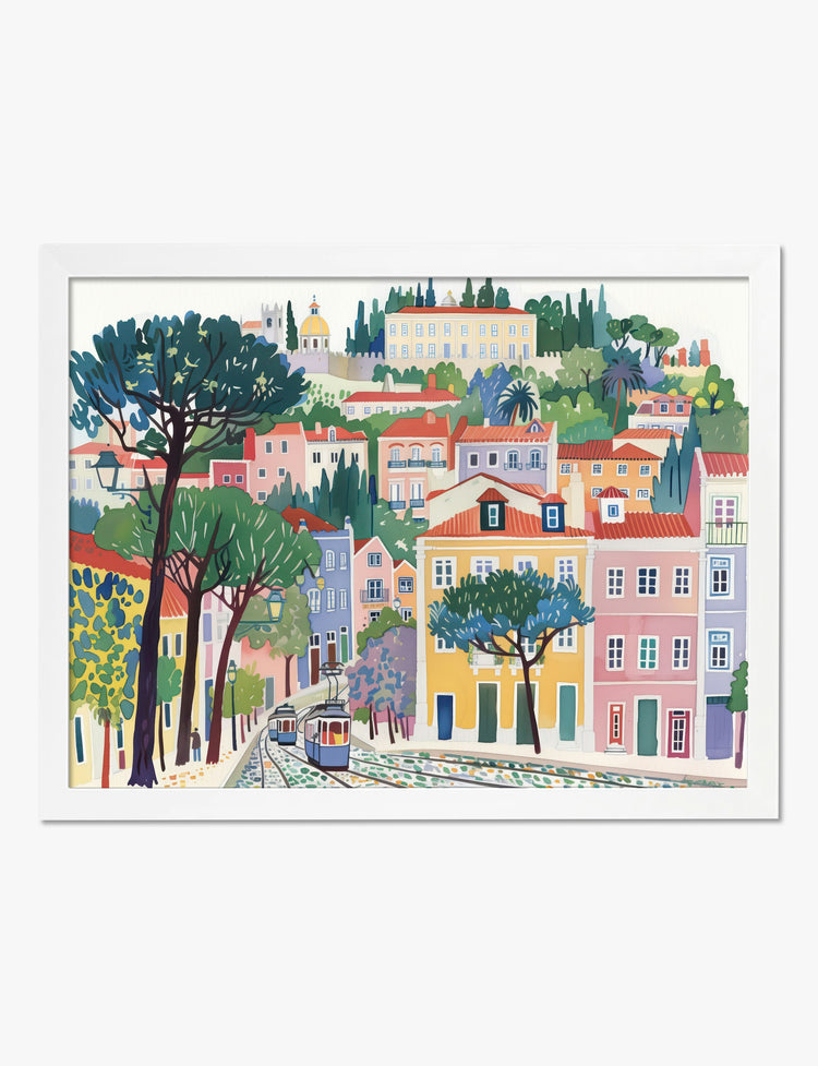 Rolling pastel rooftops, sunlit facades, and winding tram tracks—this lively cityscape instantly brings the vibrant energy of Lisbon to your walls. Every glance invites you to wander its colorful streets, where old-world charm meets playful modern flair. Thinking about a statement piece for your living room or entryway? This print pops with joyful hues—cheery yellows, soft pinks, and lush greens—that’ll effortlessly tie together eclectic, modern, or even boho decor. It’s perfect for anyone craving a splash of travel-inspired style without leaving home. Let your space tell a story of adventure and wanderlust. With this piece, you’ll feel proud to showcase your unique taste and brighten your home with European magic—no passport required.