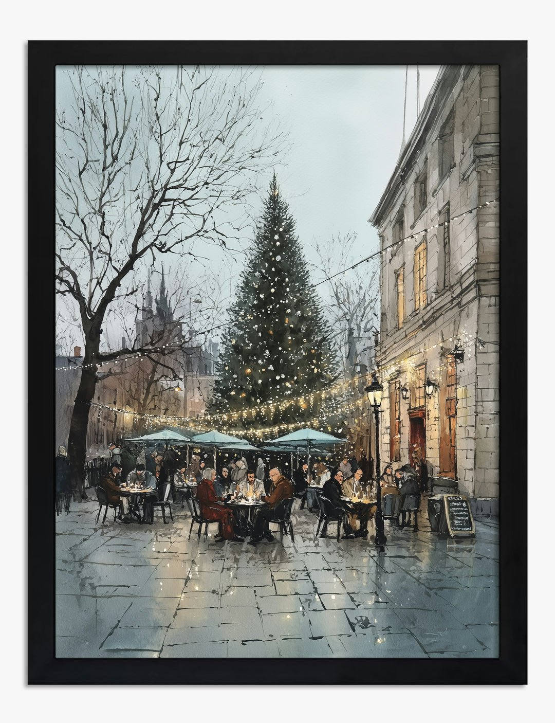 There’s a magical hush in the air as twinkling lights and laughter spill out onto the glistening city streets. This festive scene brings all the warmth and wonder of a European holiday market right into your home. Imagine cozy evenings shared with friends, the gentle glow of a grand Christmas tree, and the timeless charm of winter in the city.