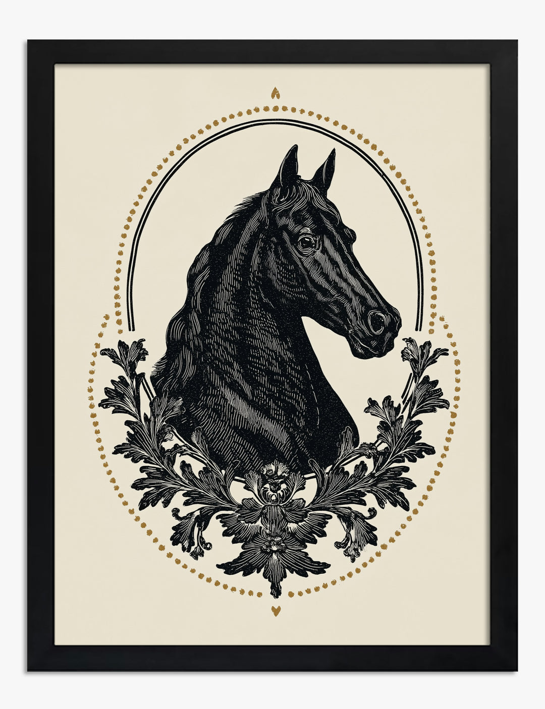 Bold and timeless, this stunning horse portrait brings a sense of strength and grace to any room. The deep black tones and intricate vintage detailing instantly elevate your space, making it feel both elegant and inviting. Whether you hang it in your living room or add a touch of sophistication to your office, this piece inspires confidence and calm—like having a quiet guardian watching over your world. Its classic palette of black and beige pairs effortlessly with modern, vintage, or eclectic decor, giving you the freedom to express your style without limits. Let your walls tell a story of power and beauty—because great design should always feel this easy.