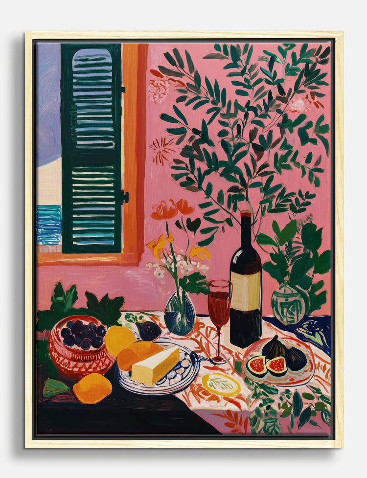 Sun-drenched afternoons and slow, joyful moments come alive in this vibrant still life. Pops of coral, green, and citrusy yellow create a playful energy that instantly brightens your space—its like bringing a slice of summer into your home, no matter the season.
