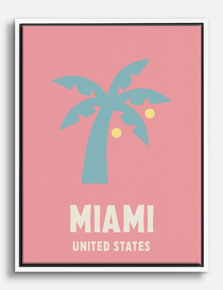 Bring a splash of Miami sunshine into your home with this playful palm tree print. The bold pastel palette instantly energizes any space, making it perfect for your living room or bedroom.