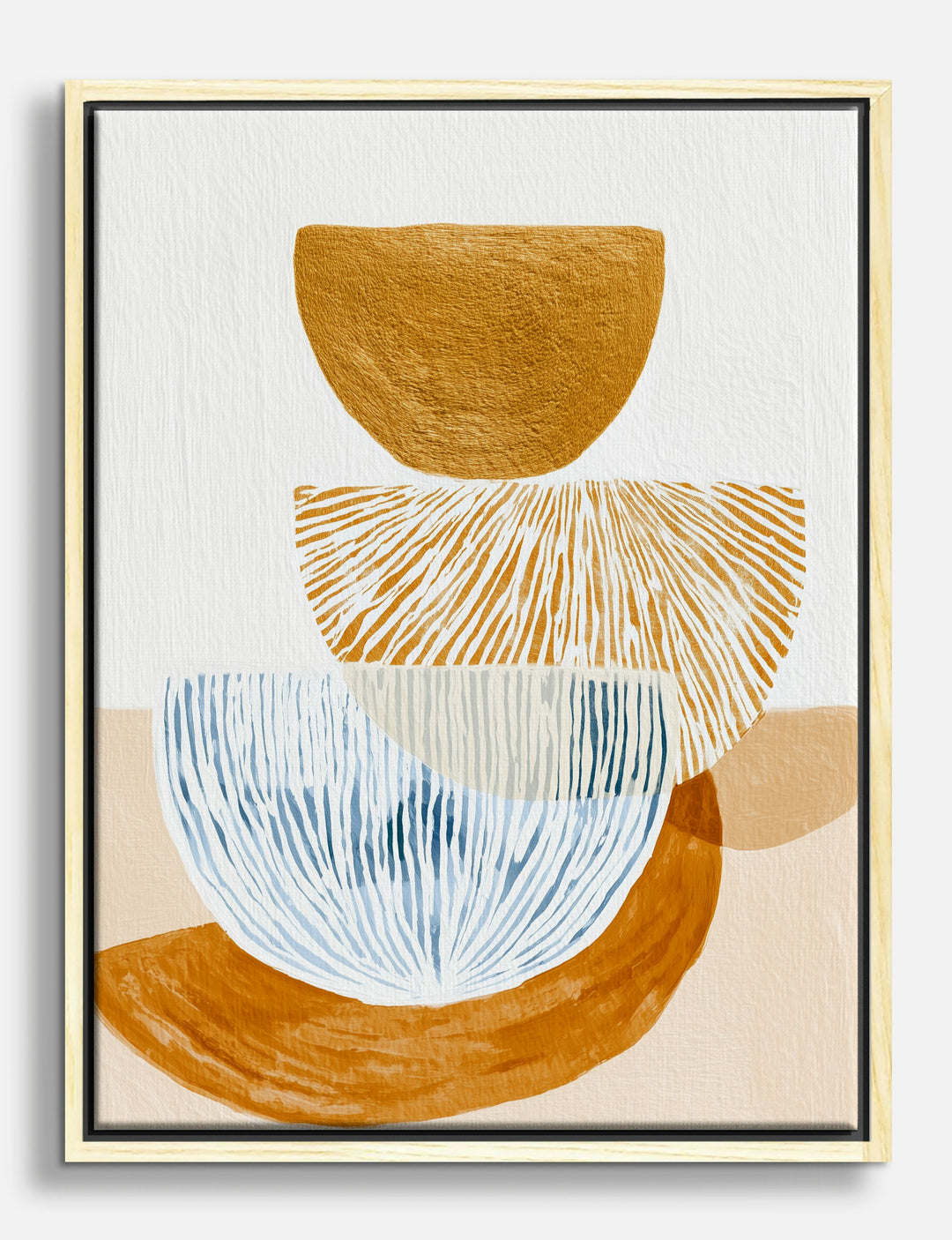 Striking shapes and soft lines come together in this effortlessly chic piece. Warm ochre and cool blue tones create a perfect harmony, adding a refined, playful energy to your walls. Looking for a stylish refresh? This artwork pops in a living room or bedroom, instantly making your space feel more curated and unique—without any heavy lifting. The organic forms and layered textures invite calm, creativity, and a sense of balance, no matter your decor style. Let this print be your daily reminder that great design is simple, joyful, and always within reach.