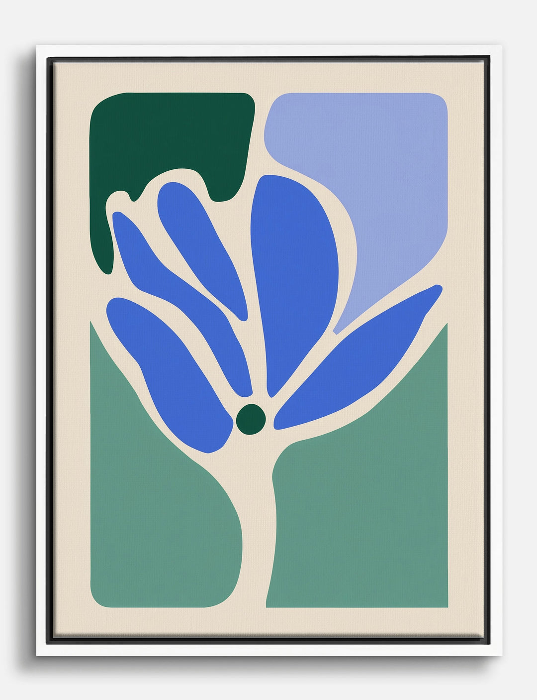 Bold shapes and cool blues come together in this abstract floral, instantly refreshing your space with a touch of modern style. The crisp lines and calming palette bring a sense of clarity and confidence—perfect for anyone ready to make a statement, no matter the size of their room.
