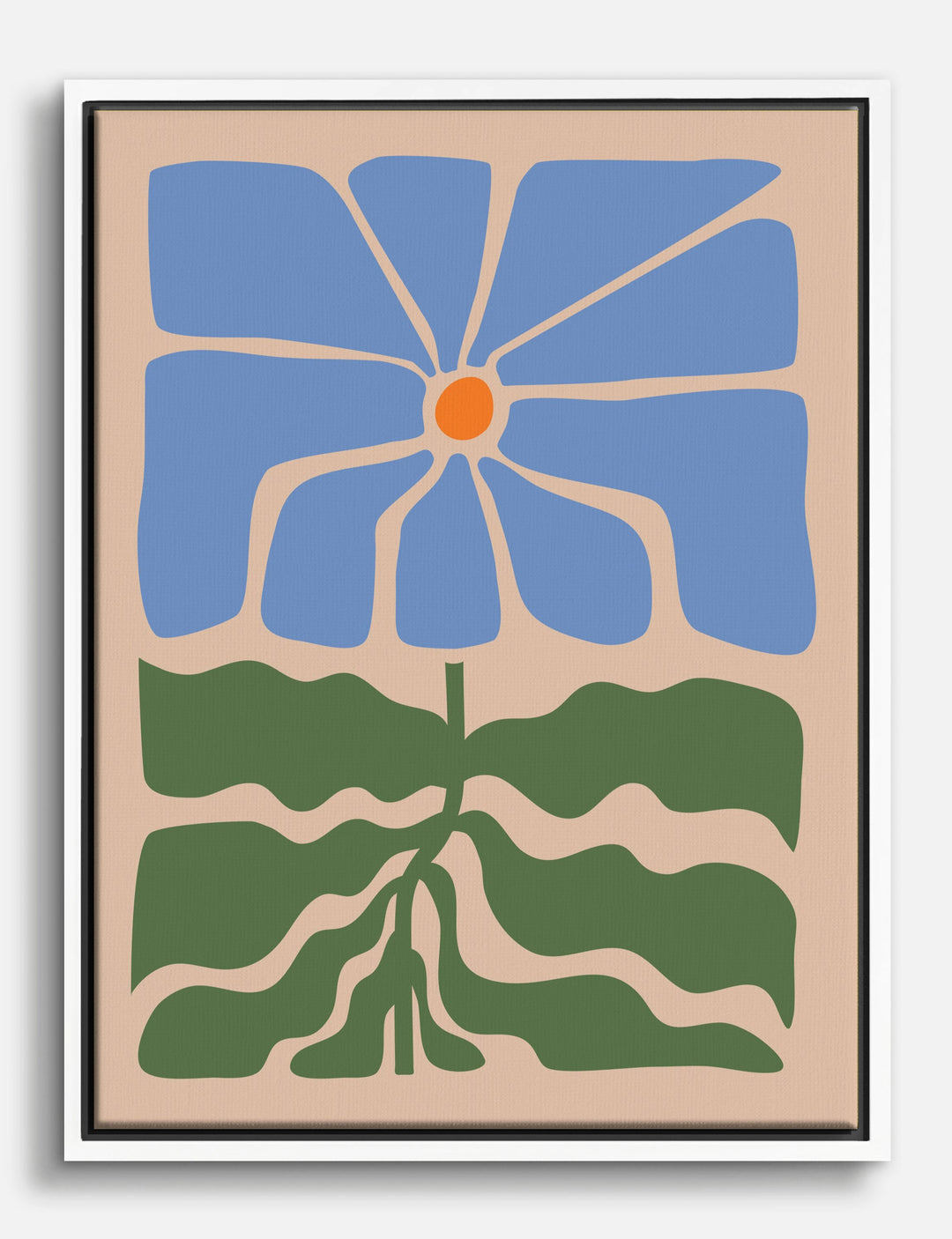 A bold burst of blue petals and vibrant green leaves instantly brings a breath of fresh energy to your walls. This playful floral, with its stylized lines and whimsical shapes, is like a little reminder that your home is yours to make joyful.