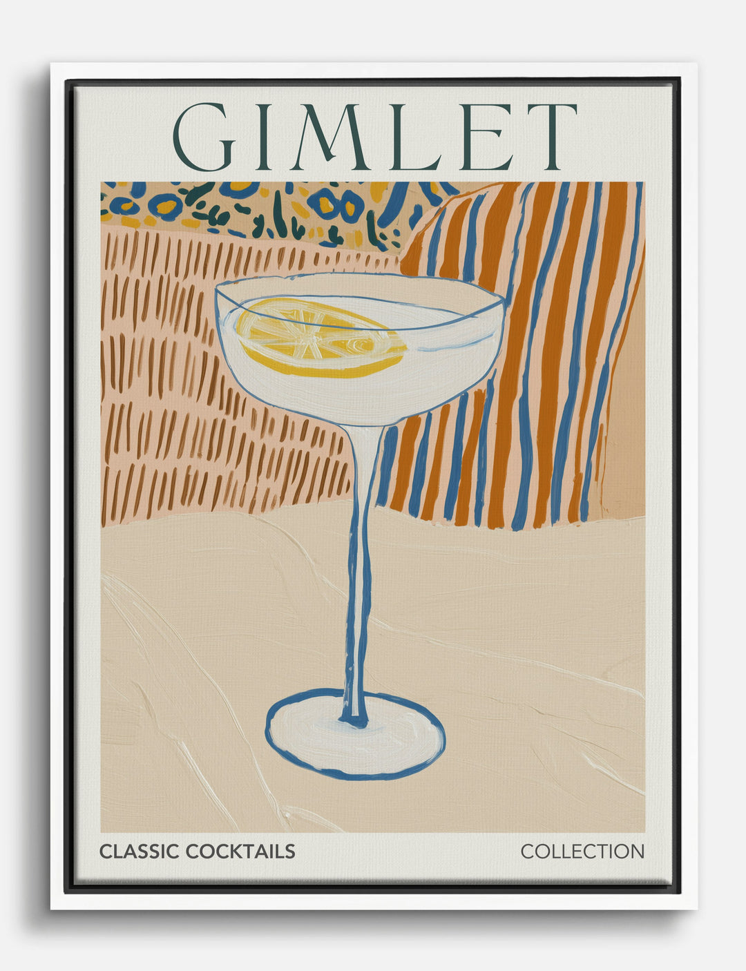 A swirl of lemon and a crisp glass come together in this playful tribute to classic cocktails. The energetic linework and cool, modern palette instantly liven up your space, making every day feel just a bit more celebratory.