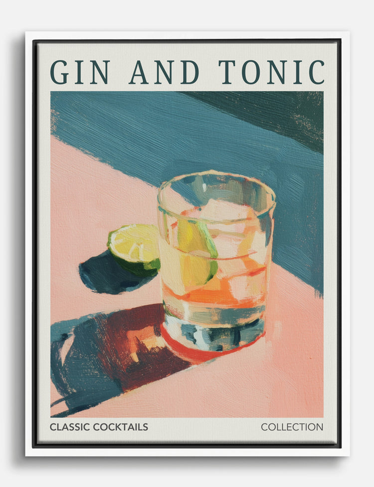 A glass of gin and tonic, kissed by sunlight and surrounded by bold shadows, brings a fresh twist to your walls. This artwork instantly sets a relaxed, upbeat vibe—perfect for sparking conversations and happy hours at home.