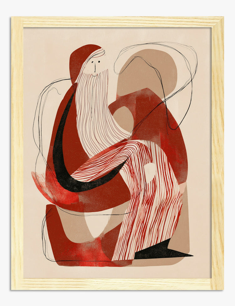 Who says holiday spirit can’t be chic? This playful, abstract Santa brings a fresh twist to classic cheer, wrapping your space in warm reds and cozy neutrals. The flowing lines and layered shapes make every glance a little adventure—equal parts festive and modern.