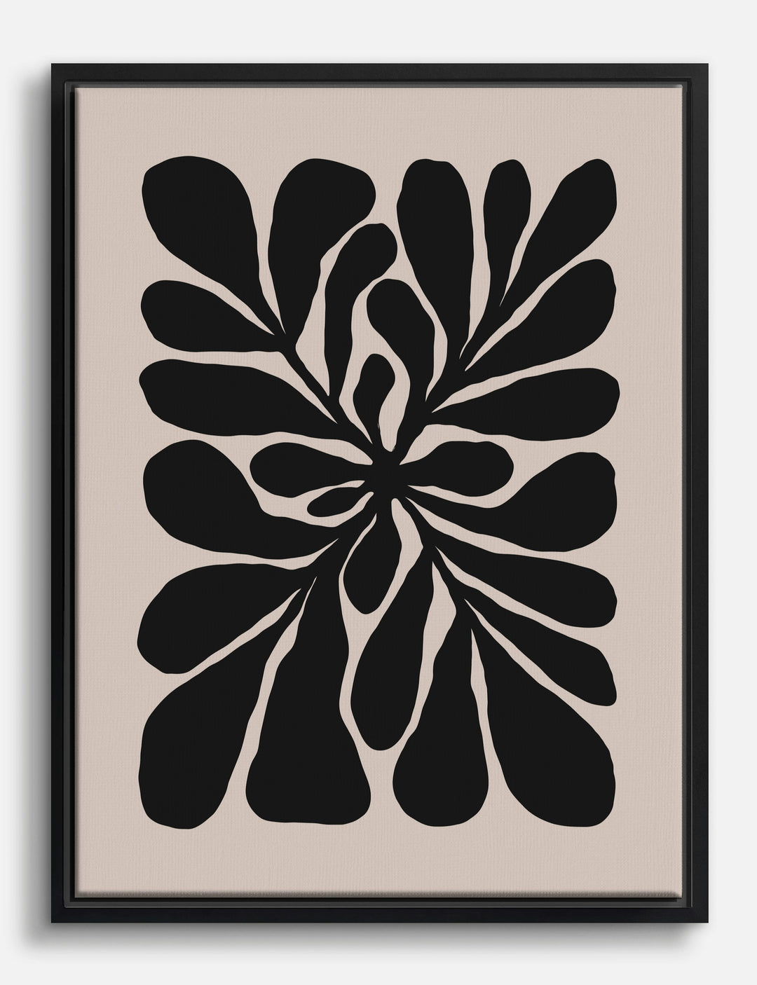Bold black shapes burst across a soft beige background, creating a striking statement that’s both modern and organic. This piece is all about confidence—effortlessly transforming your space with its abstract floral energy.