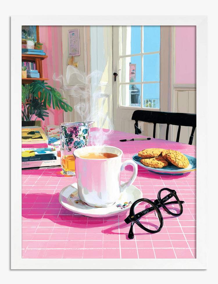 A sunlit table, a steaming cup, and that unmistakable feeling of slow, easy mornings. This piece brings the cozy charm of café culture right into your home, inviting you to savor every moment. You’ll love how the blush-pink palette and soft light instantly warm up your space—perfect for anyone who loves a pop of personality with their comfort. Whether it’s your kitchen, dining room, or even a reading nook, this print turns any corner into your personal oasis. Pair it with modern or vintage décor for a look that’s both playful and polished. You’ll be reminded daily that style and happiness can be as simple as your favorite mug and a plate of cookies.