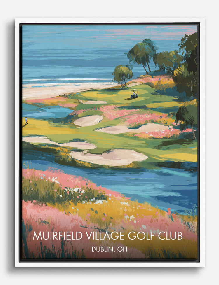 Soft brushstrokes and sunlit colors bring the iconic Muirfield Village Golf Club to life—right on your wall. This piece radiates the calm of a perfect day outdoors, inviting you to relax and recharge every time you walk by.