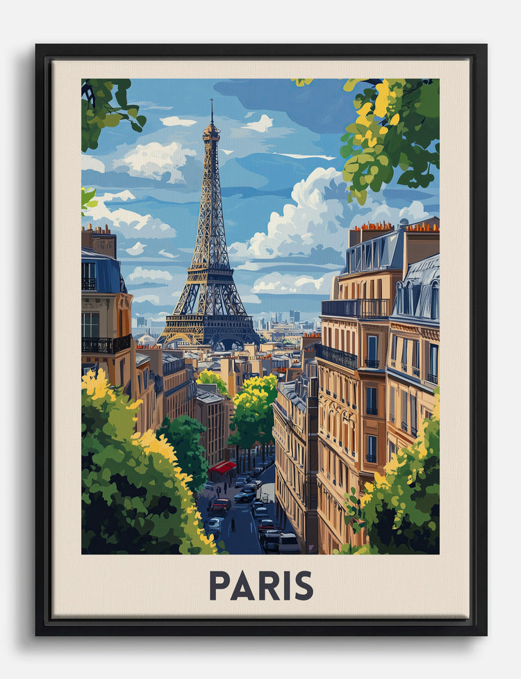 Feel the magic of Paris every day with this vibrant cityscape. The iconic Eiffel Tower rises elegantly above charming streets, capturing the essence of the City of Light. Perfect for your living room or office, this piece effortlessly blends with modern and vintage decor. Let its warm palette of earth tones and greens transport you to a place of romance and inspiration. With Fab, transforming your space into a stylish sanctuary is just a step away.
