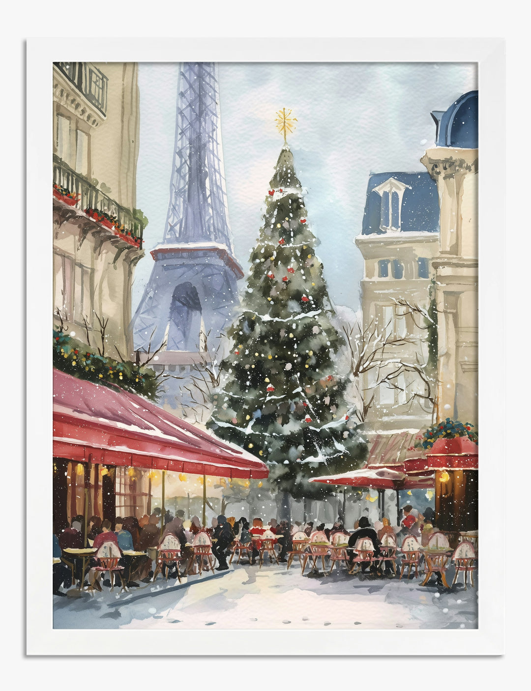 A snowy Parisian street, twinkling with festive lights and crowned by a grand Christmas tree, brings the heart of the holidays right into your home. With the iconic Eiffel Tower peeking through the winter mist, this piece instantly transports you to cozy café terraces and sparkling city nights.