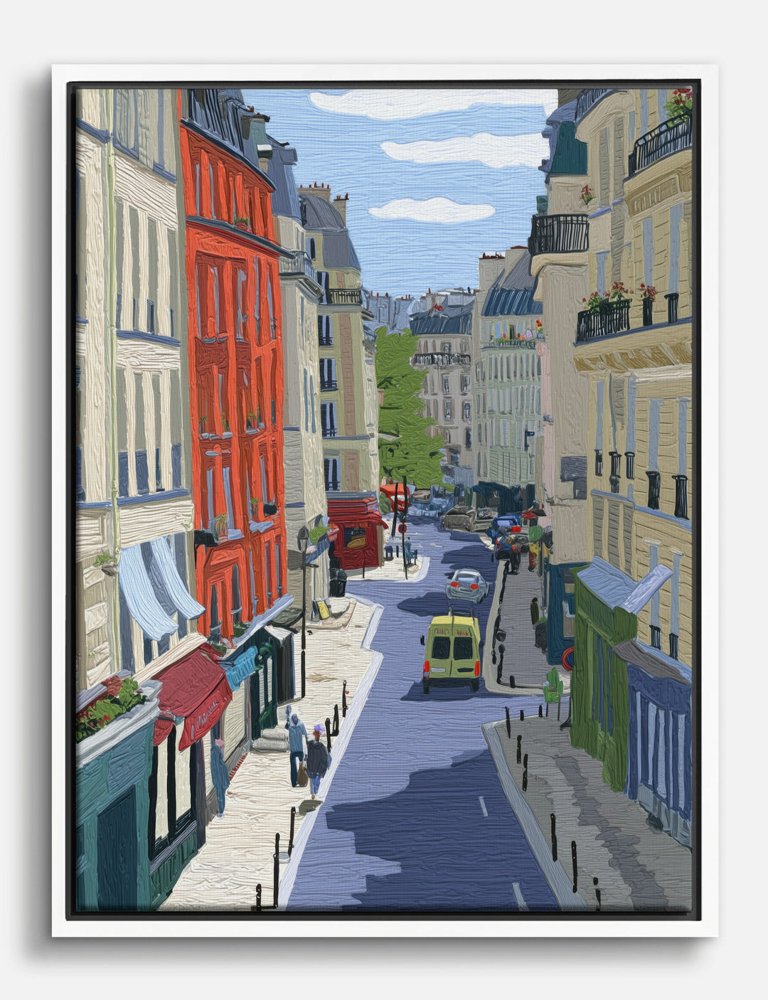 Step into the charm of Paris with this lively streetscape, where pastel buildings and pops of red invite you to linger. The scene’s gentle sunlight and winding avenue bring a sense of adventure and warmth to your home, making every day feel like a stroll through the City of Light.