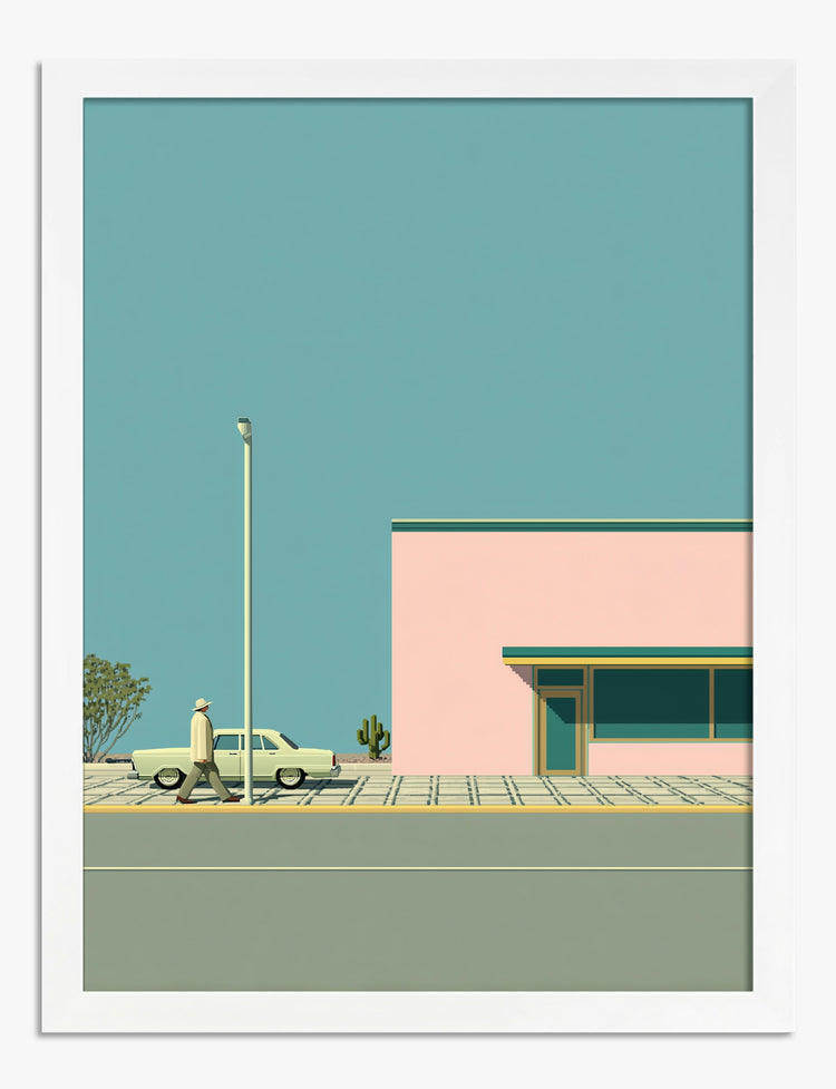 There’s a quiet confidence in simplicity, and this piece captures it beautifully. A soft pink building, a classic car, and a clear blue sky—each detail feels intentional, creating a sense of calm and order. You’ll love how this artwork brings a fresh, airy vibe to your favorite room, making even the busiest spaces feel more open. Perfect for your living room or office, the gentle pastel palette plays well with both modern and vintage decor. It’s an easy way to add a touch of retro-cool without overwhelming your space. Every time you glance at it, you’ll feel a little more relaxed—and a lot more stylish. Let your walls reflect your unique sense of calm, creativity, and effortless sophistication.