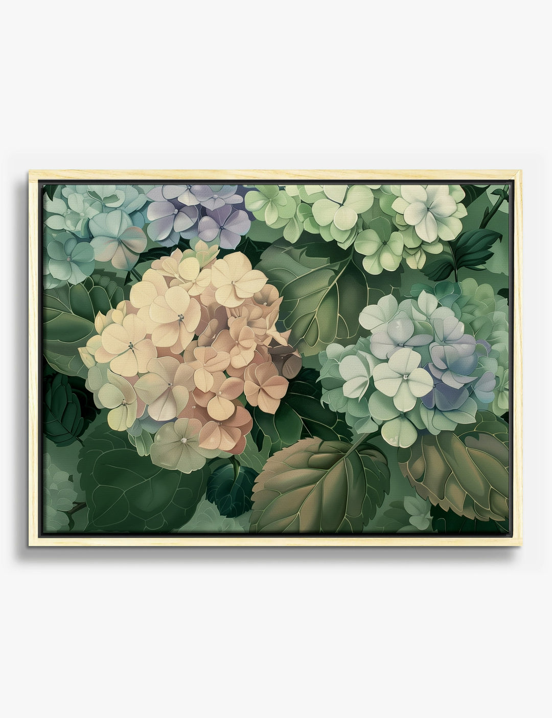 Soft clusters of hydrangeas bloom in gentle pastels, inviting a sense of calm and quiet sophistication into your space. This piece brings the soothing magic of a morning garden right to your walls, making every day feel a little more tranquil. Perfect for your bedroom or living room, these delicate florals instantly freshen up your decor—no green thumb required. The subtle blend of blush, lavender, and mint tones pairs beautifully with both modern neutrals and classic vintage styles. You’ll love how this print creates a sanctuary vibe—somewhere to relax, recharge, and take pride in a space that feels uniquely you. Style comes easy when transformation is this effortless.