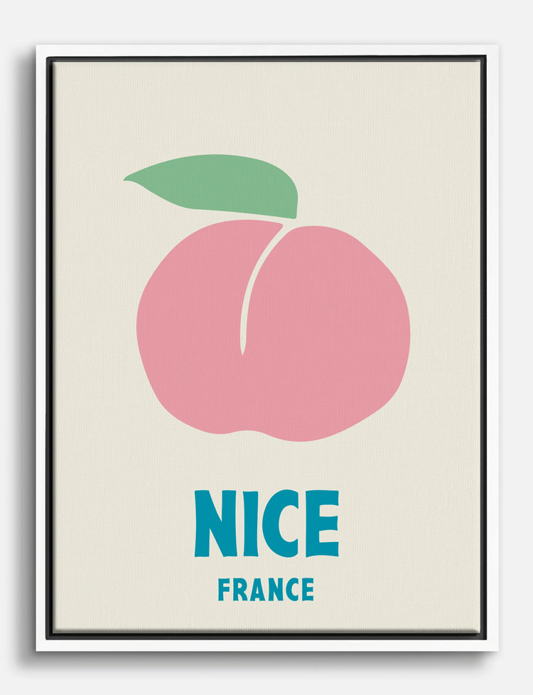 A playful pop of pastel pink and green, this piece brings the effortless charm of the French Riviera straight to your walls. The bold, graphic peach paired with friendly blue lettering gives any space a fresh, sunny vibe—no passport required.