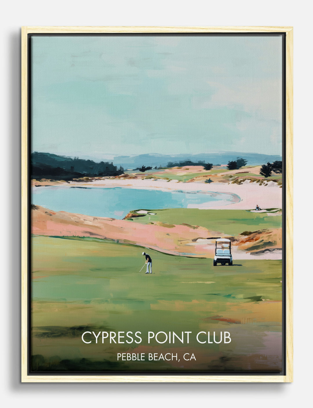 Step into the laid-back luxury of California’s coast every time you glance at your wall. This serene scene of Cypress Point Club brings the breezy calm of Pebble Beach right into your space—think rolling greens, sparkling blue waters, and the quiet anticipation of a perfect swing.