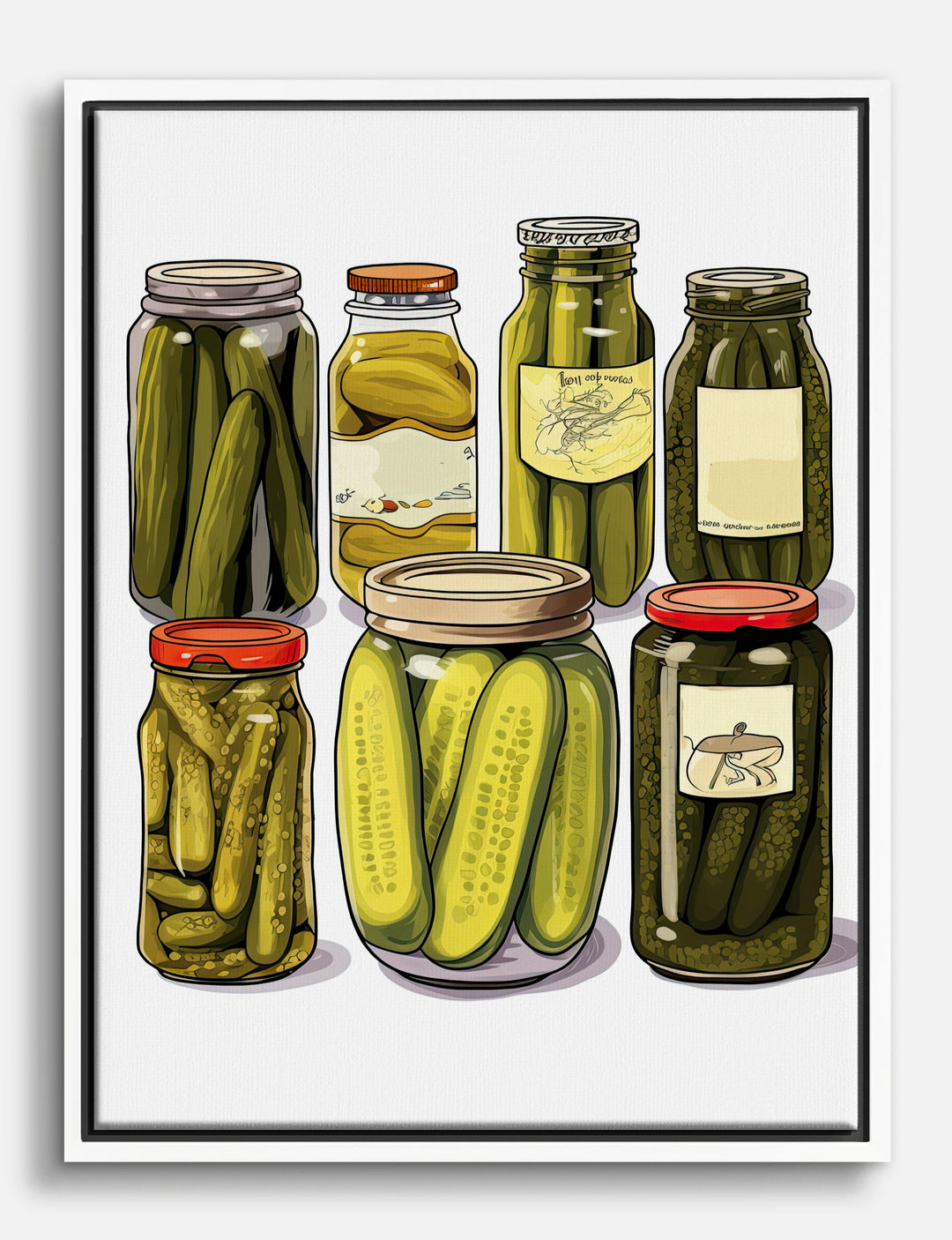 Feeling nostalgic for those quirky kitchen moments? This playful lineup of pickle jars brings a burst of charm and color to your walls. Each jar is a celebration of everyday joy—perfect for sparking smiles in your kitchen or dining room. The fresh greens and warm golden tones pop against any decor, instantly making your space feel more inviting. Let your home tell a story that’s as unique (and tangy!) as you are—no renovation required.