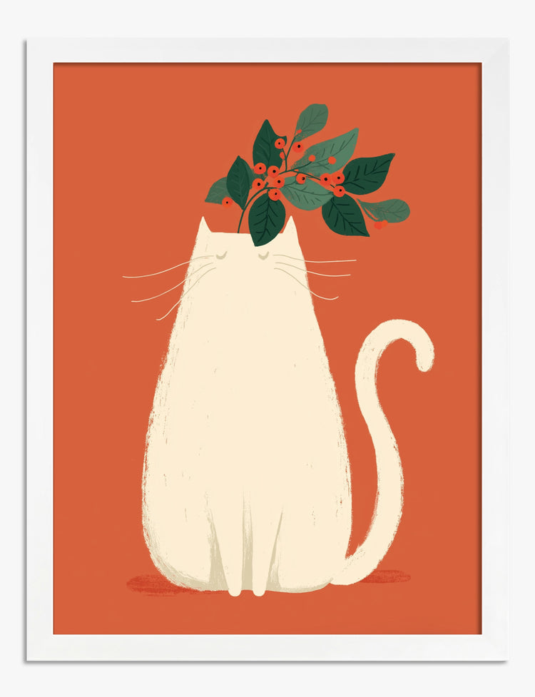 Playful Cat & Mistletoe Art Print