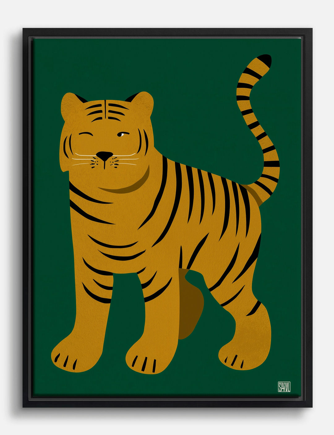 There’s something instantly uplifting about a tiger’s confident stance — and this piece delivers that wild energy straight to your walls. With bold stripes and a rich emerald green backdrop, it’s both playful and powerful, the kind of art that sparks conversation and brings a burst of character to any space. Perfect for your living room or bedroom, this tiger’s golden hues and graphic lines pop against neutrals or add drama to colorful decor. It’s a unique accent that says you’re not afraid to show your stripes — or your style. Let this modern feline remind you every day that your home is your sanctuary, and transforming it is as easy as choosing art that makes you smile. You’ll love the pride and personality this piece brings into your space.
